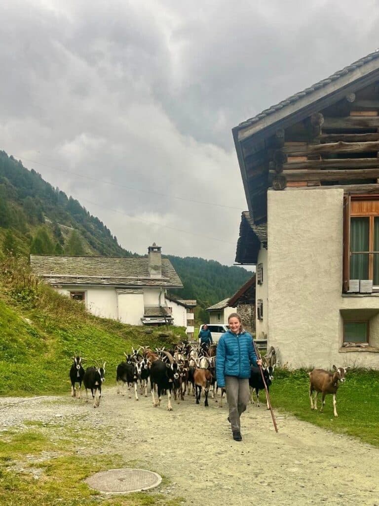 Am allerliebsten habe ich die Weidepflege bei den Pferden gemacht und Geissen gesucht. Bei beiden Aufgaben war man für einige Stunden damit beschäftigt, durch die wunderschöne Berglandschaft rund um das Dorf zu laufen und die Augen offen zu halten. Ich habe das immer unglaublich genossen. Die Natur ist einfach unfassbar schön und ich habe es geliebt, mich völlig frei zu bewegen und die Aussicht und die Landschaft zu geniessen. Die Arbeit mit den Tieren hat mir aber auch sehr gefallen. Besonders die Ziegen sind mir ans Herz gewachsen. Sie sind gutmütige und gemütliche Tiere und das Melken ist auch gar nicht so schwierig, wie ich es mir vorgestellt hatte. Das habe ich auch immer sehr gern gemacht.